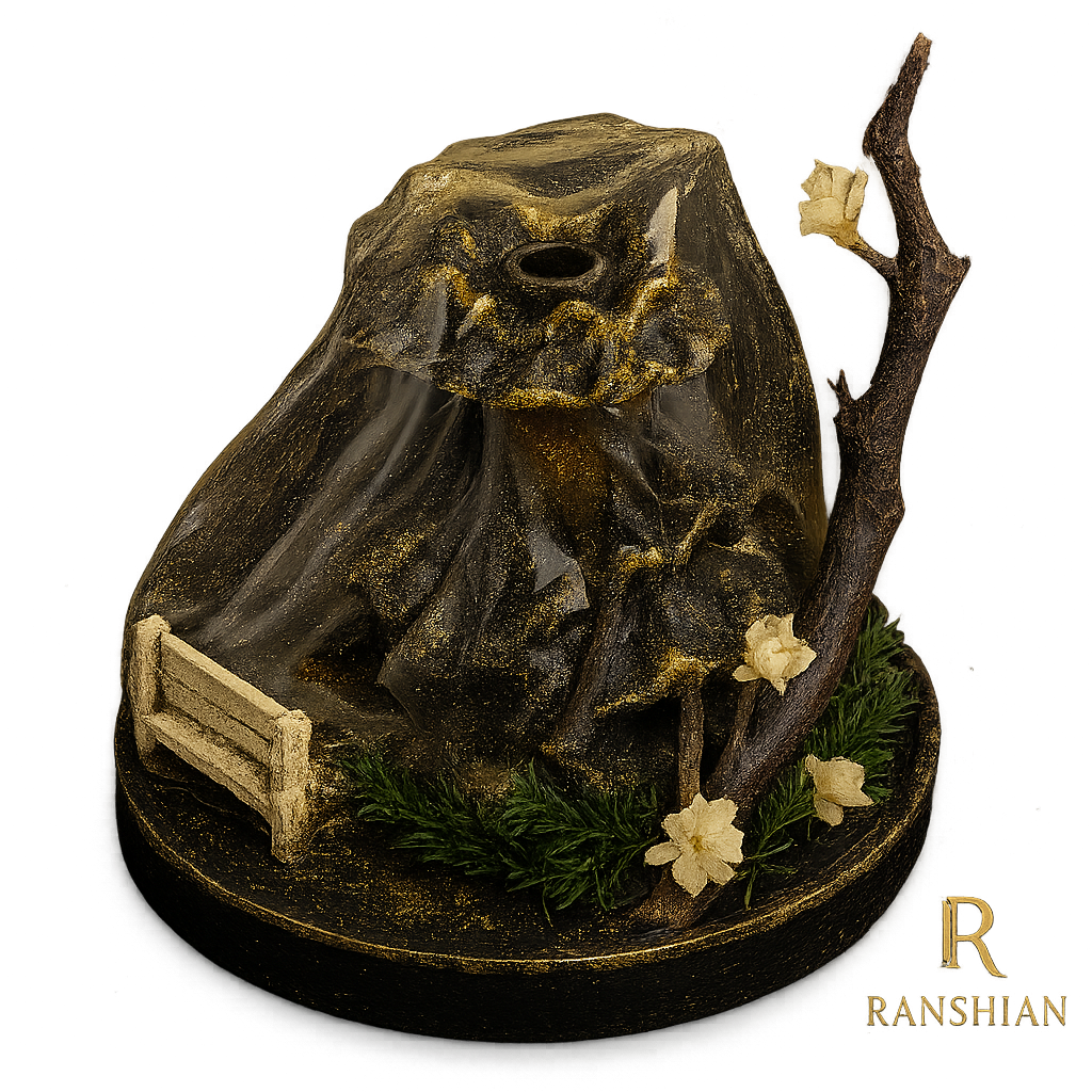 جاعودی آبشاری رزینی با طراحی هنری و جریان دود آبشاری، ساخته‌شده با جزئیات طبیعی و رنگ‌های خاص؛ مناسب دکور و آرامش‌بخش فضای خانه.