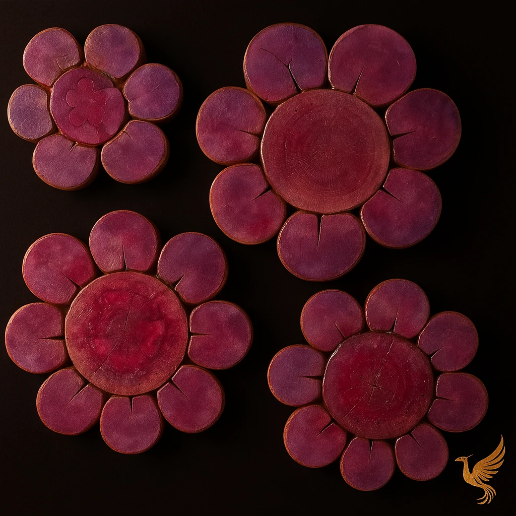 ترکیب دو چوب الهام‌گرفته از طبیعت؛ انجیرِ روشن و آلبالوی تیره، کنار هم در قالب گل‌های دست‌ساز رناشیان. زیبایی دلنشینی که هم می‌تونه زیرقابلمه‌ باشه هم زینت میز چای عصرونه‌ات.