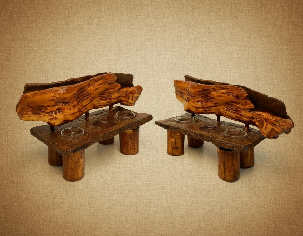 جاشمعی دستساز از چوب گیلاس و پایههای چوب طبیعی، با طراحی الهامگرفته از نیمکتهای جنگلی؛ مناسب چیدمانهای روستیک، بوهو و فضاهای گرم و صمیمی خانه.
