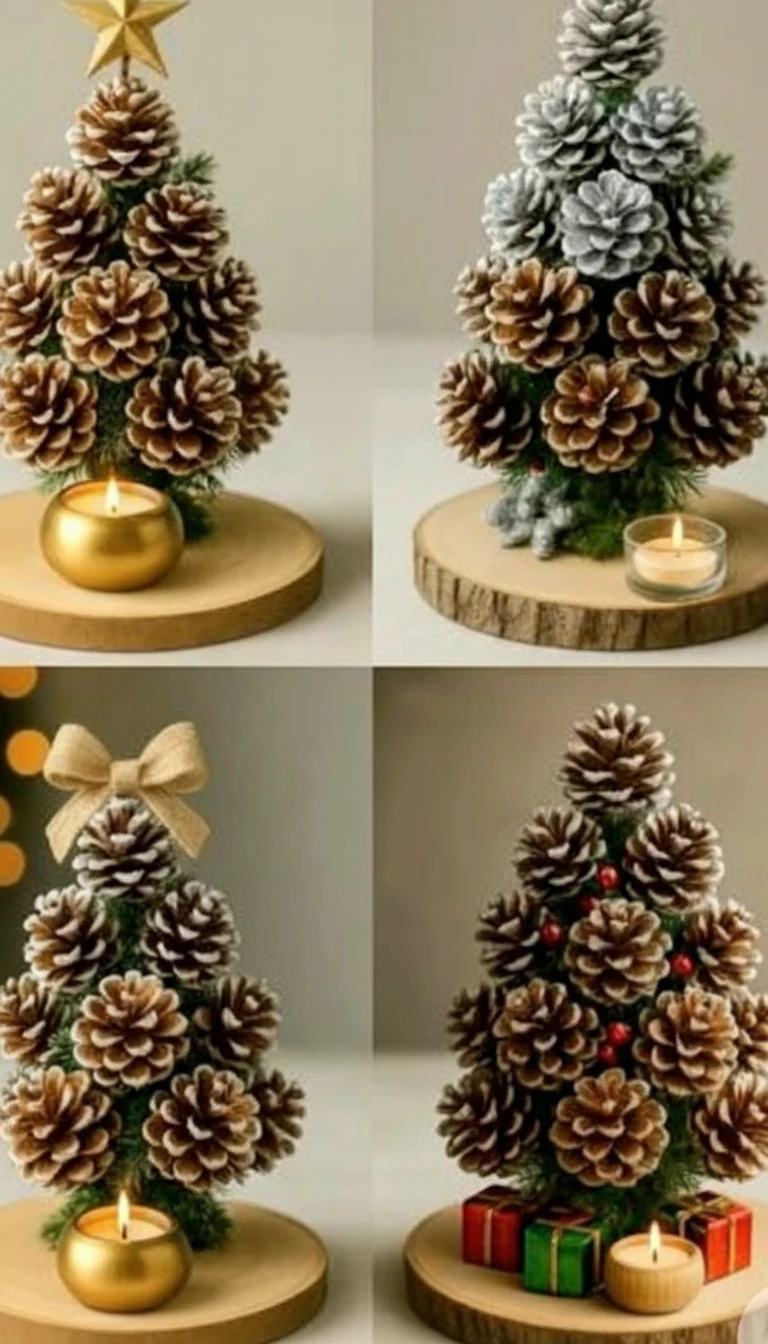 مدل ۱: ستاره طلایی + شمع طلاییمدل ۲: برفی خاکستری + شمع شیشهایمدل ۳: پاپیون کنفی + شمع طلاییمدل ۴: گویهای قرمز + پایه هدیهای + شمعاین درختچههای کوچک زمستانی با مخروطهای واقعی کاج ساخته شدهاند تا یک تکهی دنج از جنگل برفی را روی میز خانهات بنشانند.